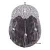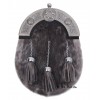 A dress sporran made from real leather and the fur or fabric of your choice. The knotted metal cantle is open to show the underlying leather.